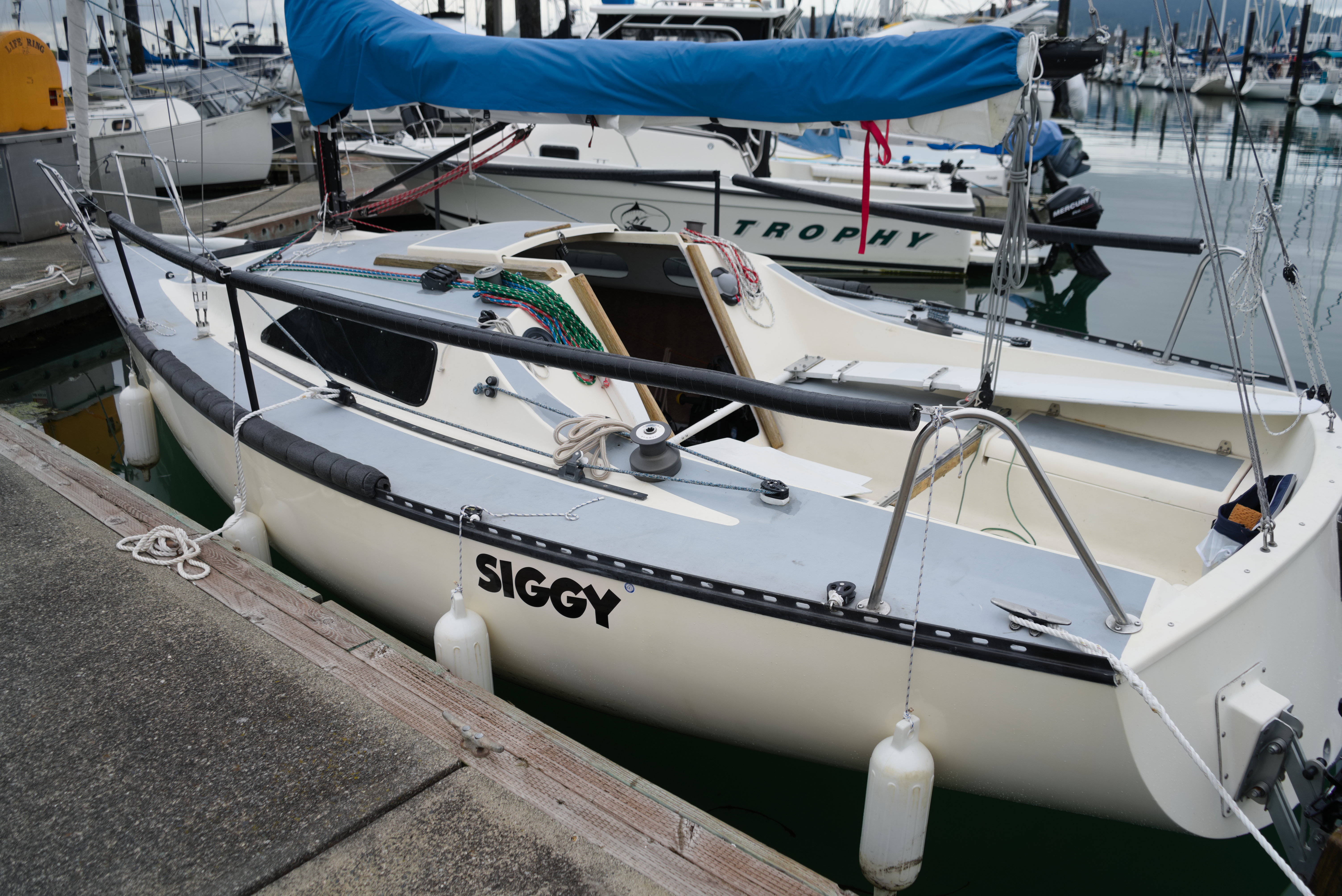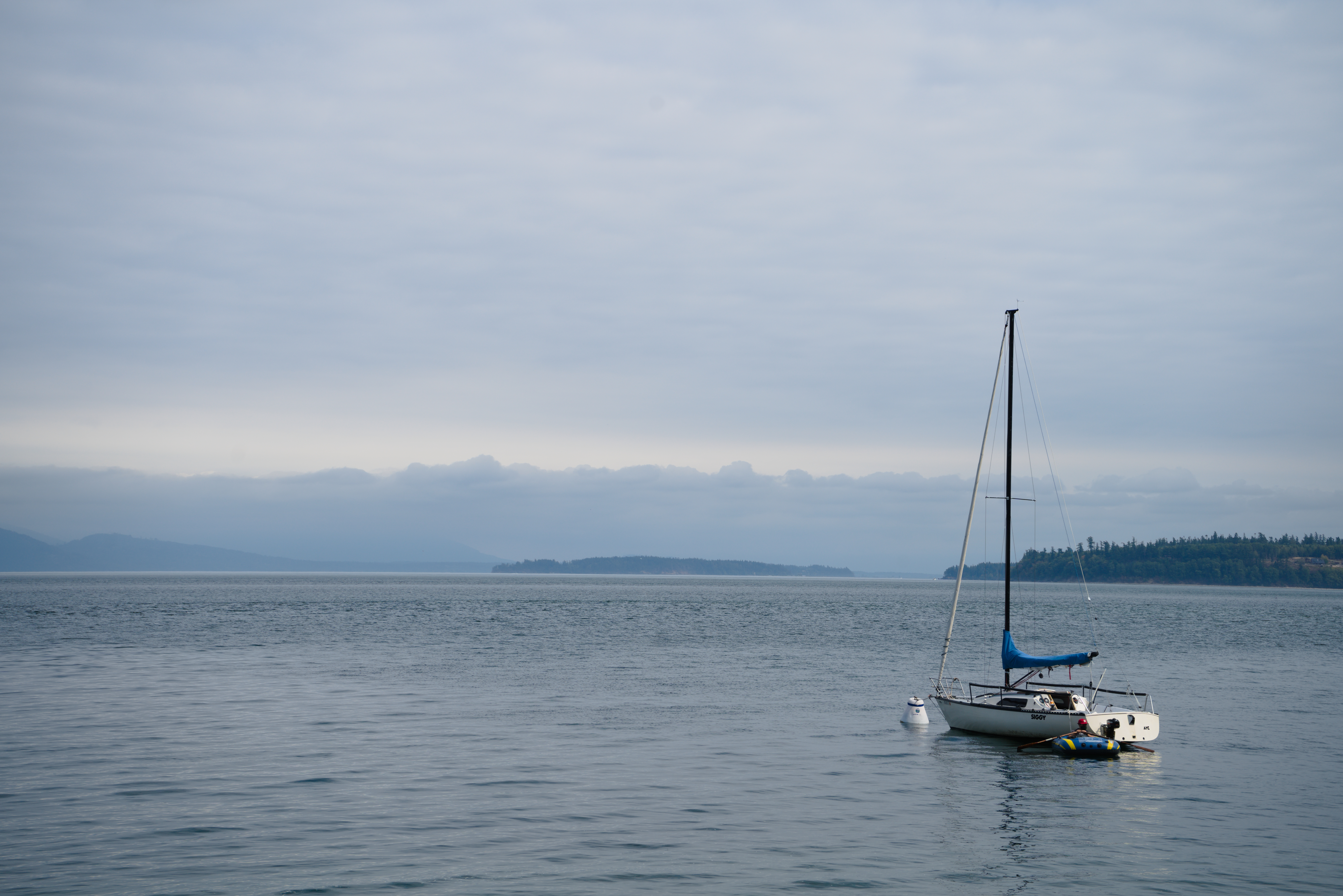 Today, more storytelling, less tech talk. At the beginning of the summer, I was invited to go sail camping with some friends from the sailing team. We sailed out of Anacortes on Annas Dad’s Sailboat, Siggy. With the lack of wind, we were trying to catch the outgoing tide to make it around Guemes Island. I arrived at the marina at 8 am, which meant I woke up at 6 am. Nobody was there, and I slept in my car until 11. The first to arrive was Anna, who let me into the marina, where I got the first photo of the trip. Out beautiful little yacht, Siggy. A 23-and-a-half-foot-long swing-keel boat was one of two hundred made. I loved the design as it was simple and light with an asymmetrical spinnaker.