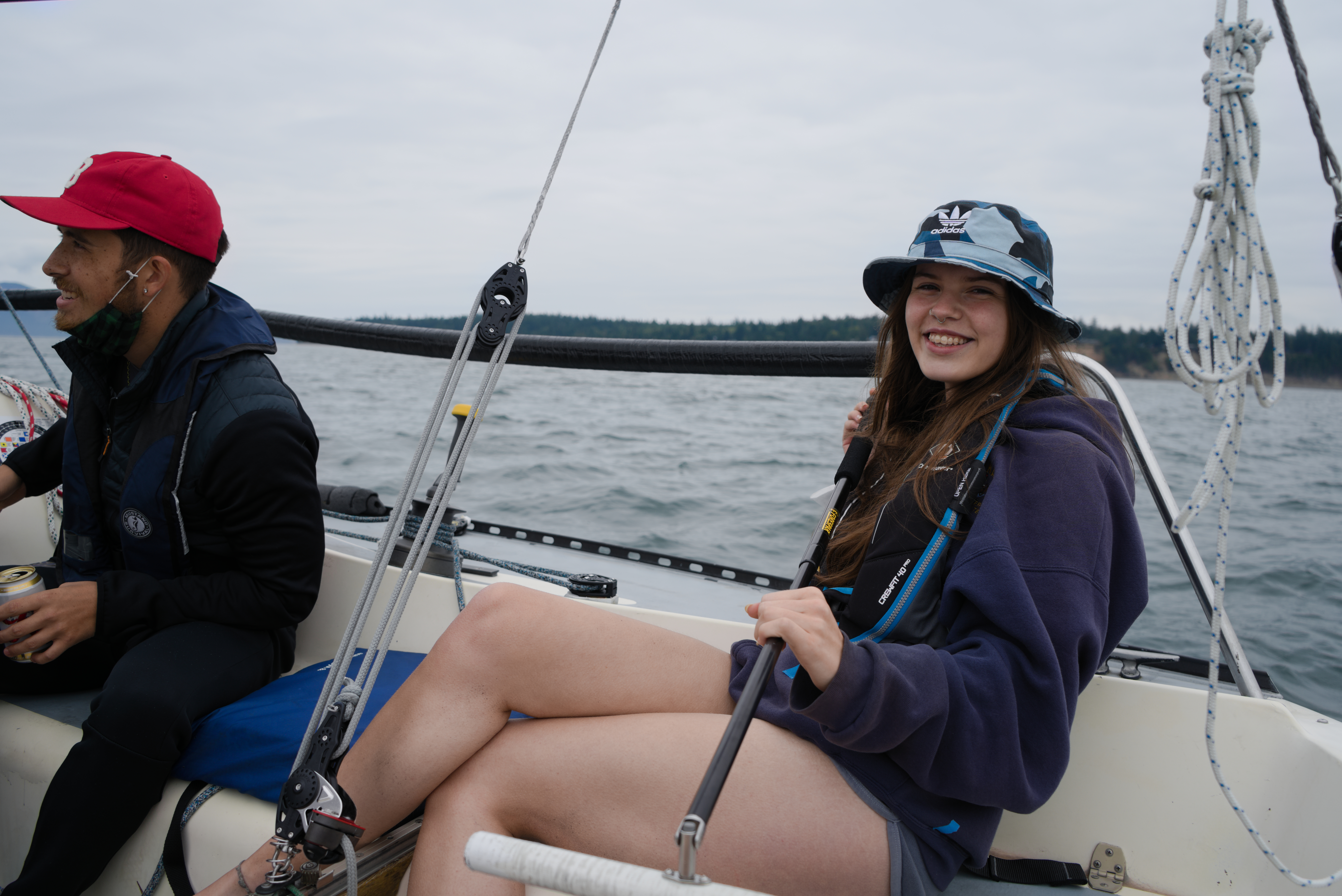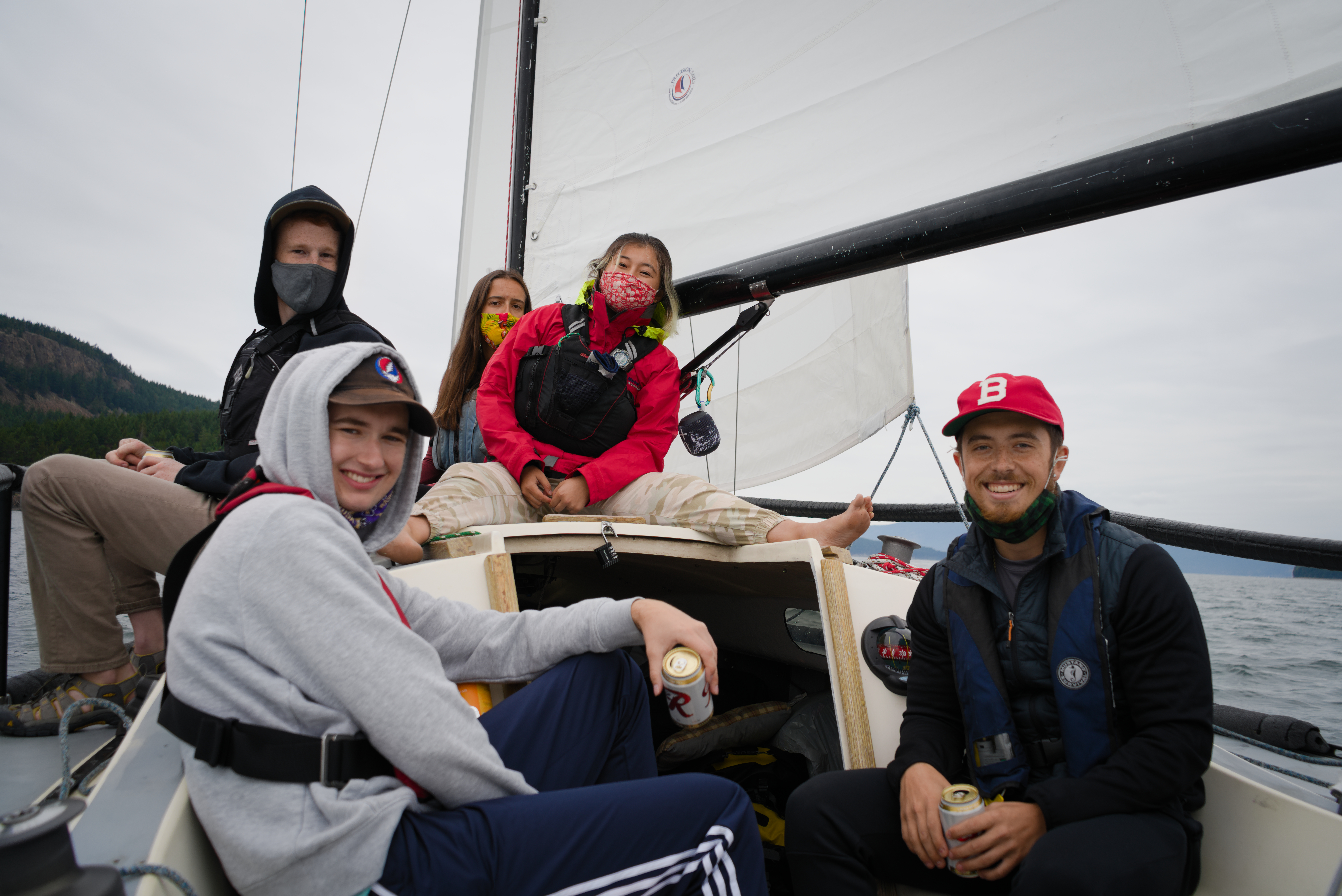 The rest of the group began to arrive; Satone, who I later learned is also a photographer, was Anna’s sailing instructor and long-time friend. Then the “party bus” consisted of Chris, Nick, Cooper, and Lara. Chris had previously worked with Anna and Satone and was in a fraternity with Cooper and Nick, and Lara was Cooper’s girlfriend. Nick, Cooper, and Lara had never sailed before, and it was Lara’s first time on a small boat. This put Anna, Satone, Chris, and I in the funny space of guiding them all the time on the boat. But they turned out to be fantastic sailors in the end.