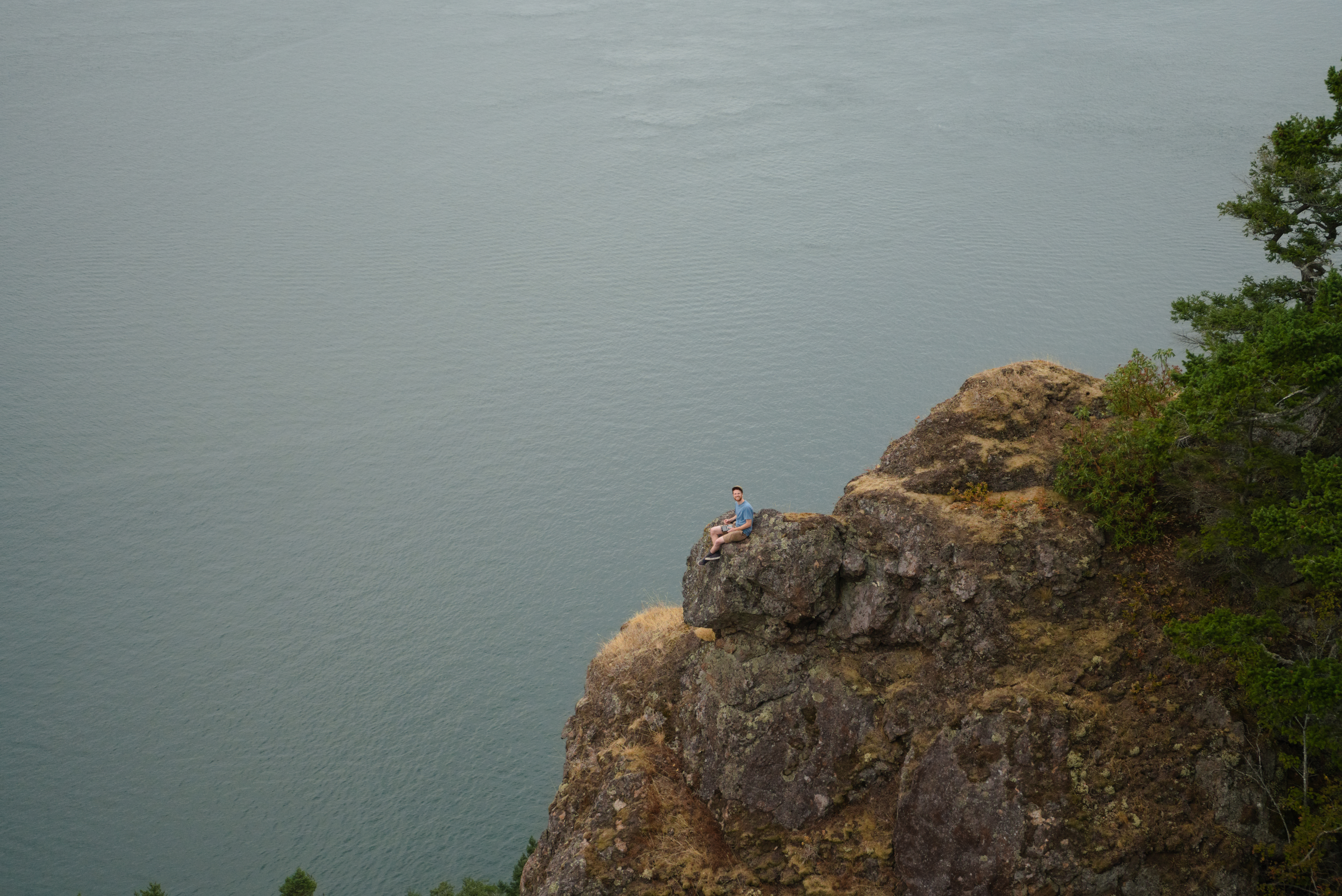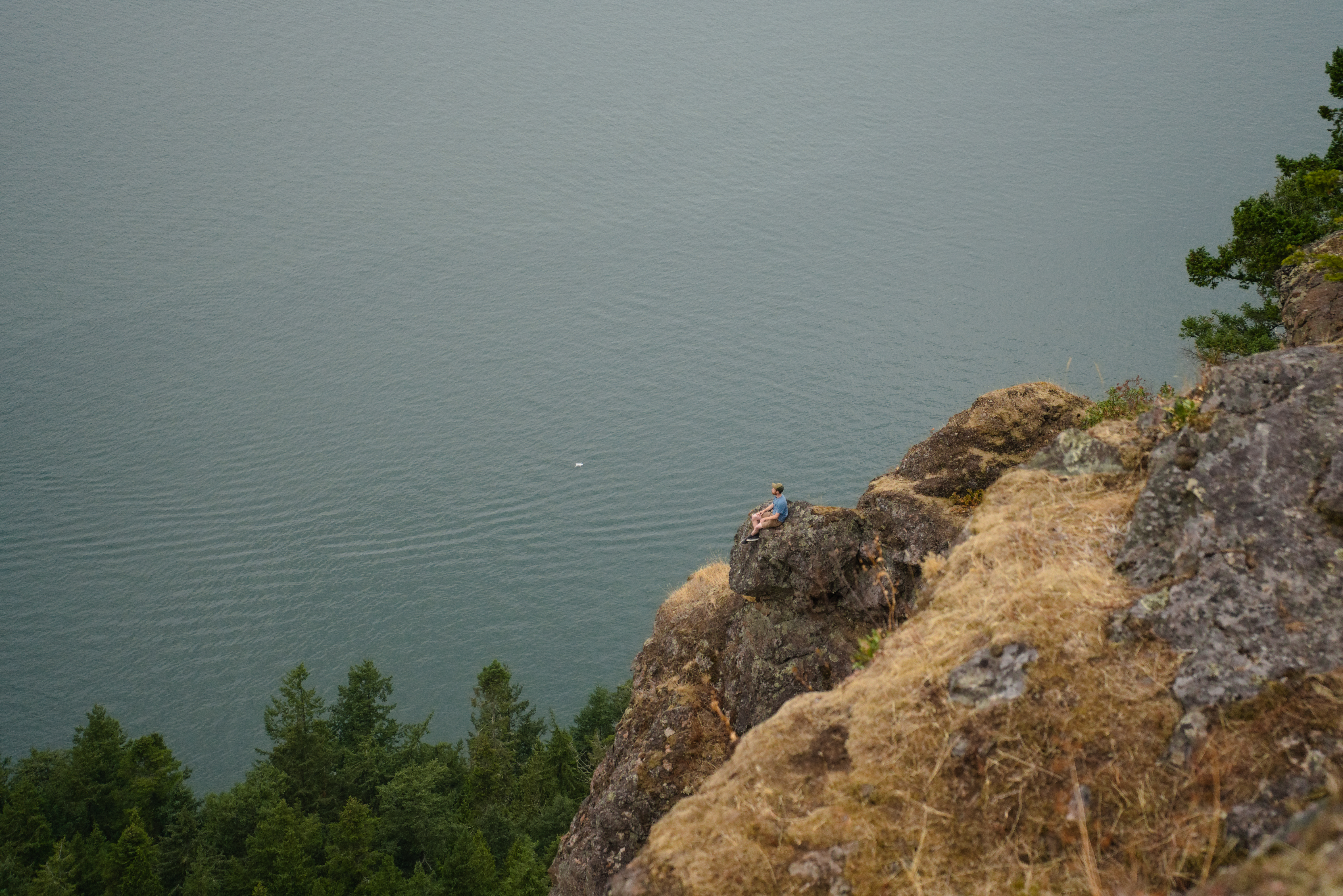 We made the tide, but the wind died so much that we motored the final half-mile to a DNR mooring buoy at Pelican Beach. Pelican Beach was a great place to land as it was a short hike from the main attraction, Cypress Head on Cypress Island. After dragging our gear ashore, we all caught our bearings in the sun on the beach.