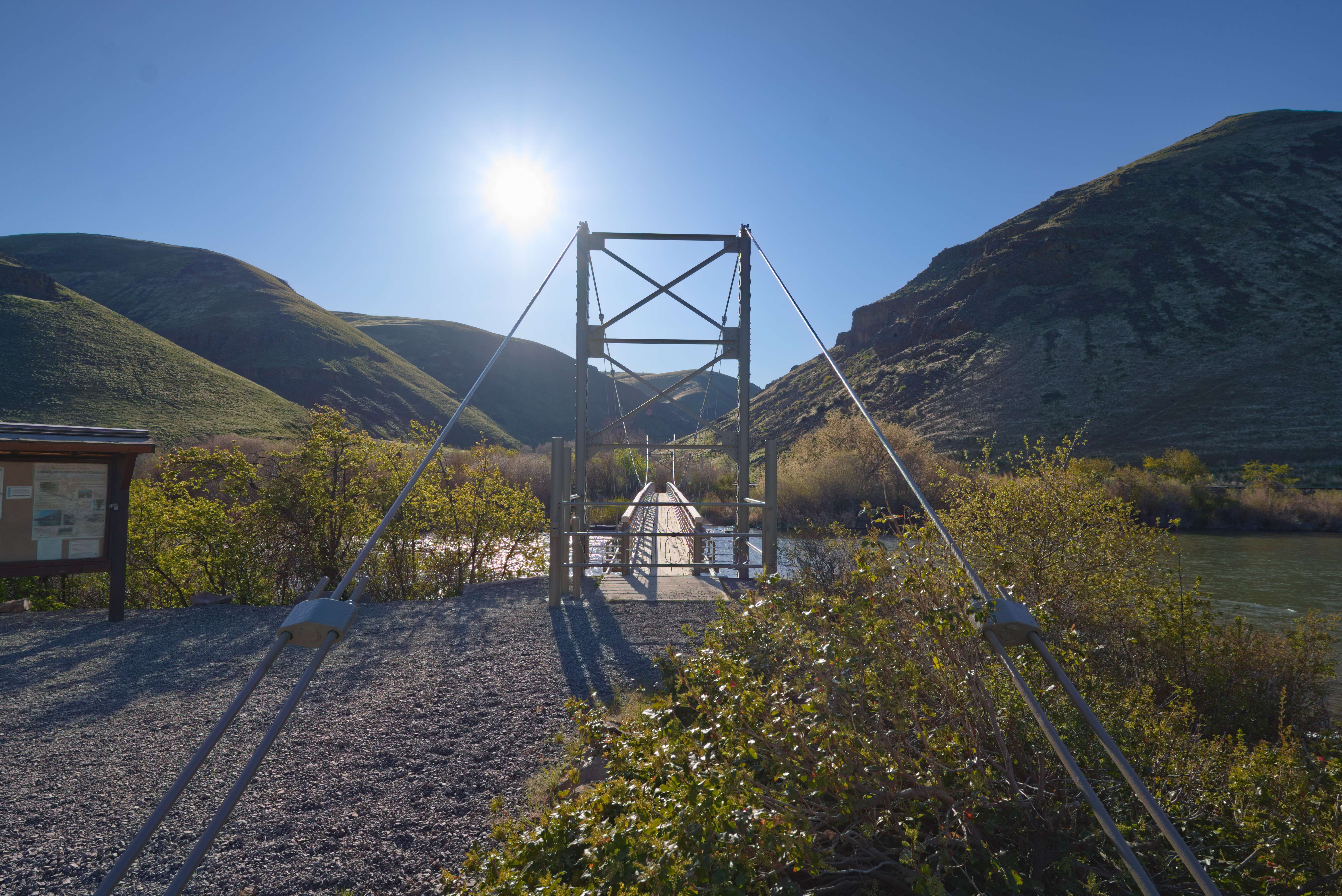 The first use the lens got was on a fishing trip with my dad to the Yakima River Canyon. I captured shots from a new tripod in the passenger seat and of the suspension bridge across the river.
