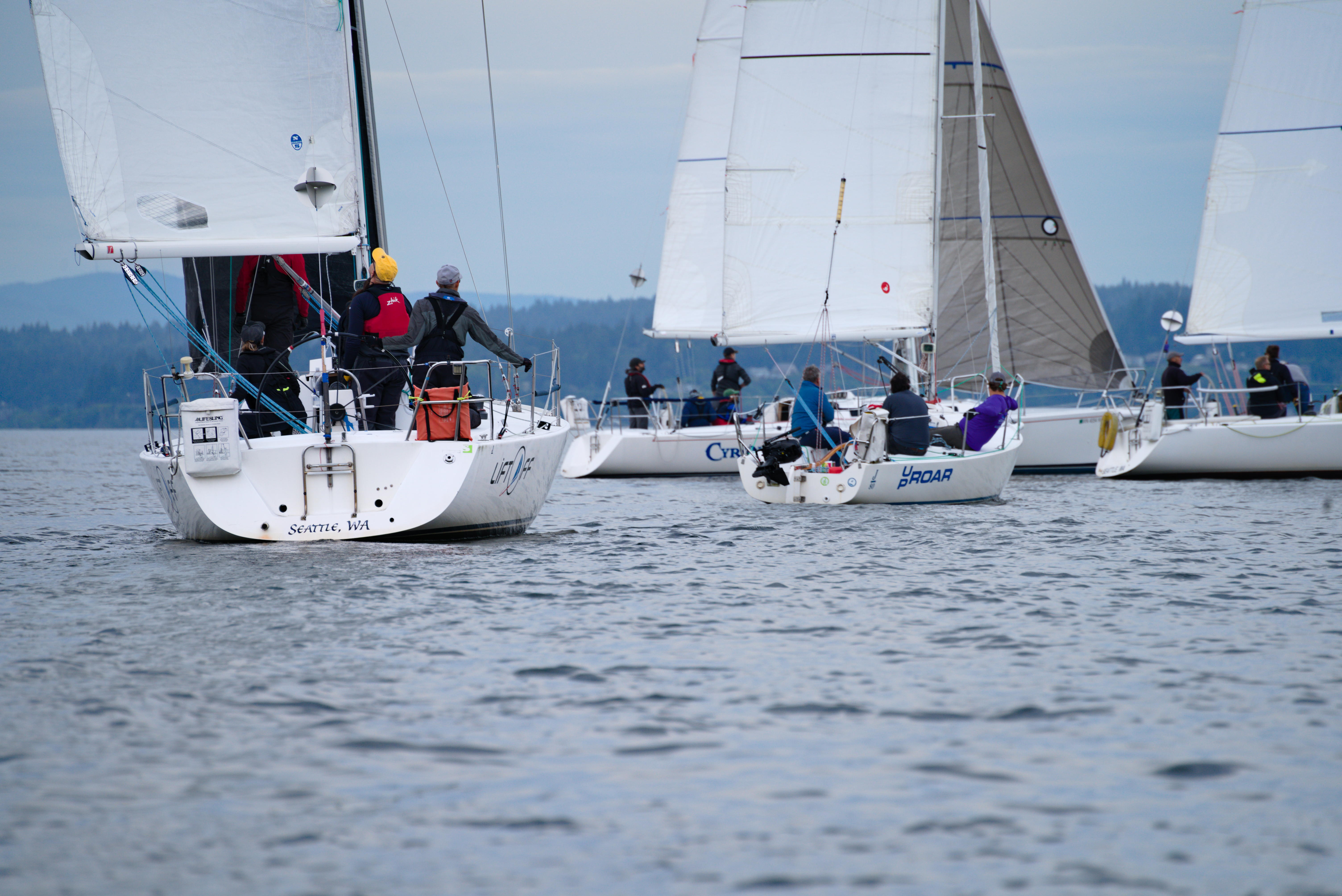 After being a volunteer race committee member on Orcas Island for a J80 regatta with Giancarlo, I was invited to help with Wednesday night races. I got to see some friends I had not seen in years and drove a boat, so it was a fun evening. The weather was pretty bad, with no wind and overcast skies. But I got to put my new telephoto lens to work. Very few photos in this set, but I think they all turned out fantastic.