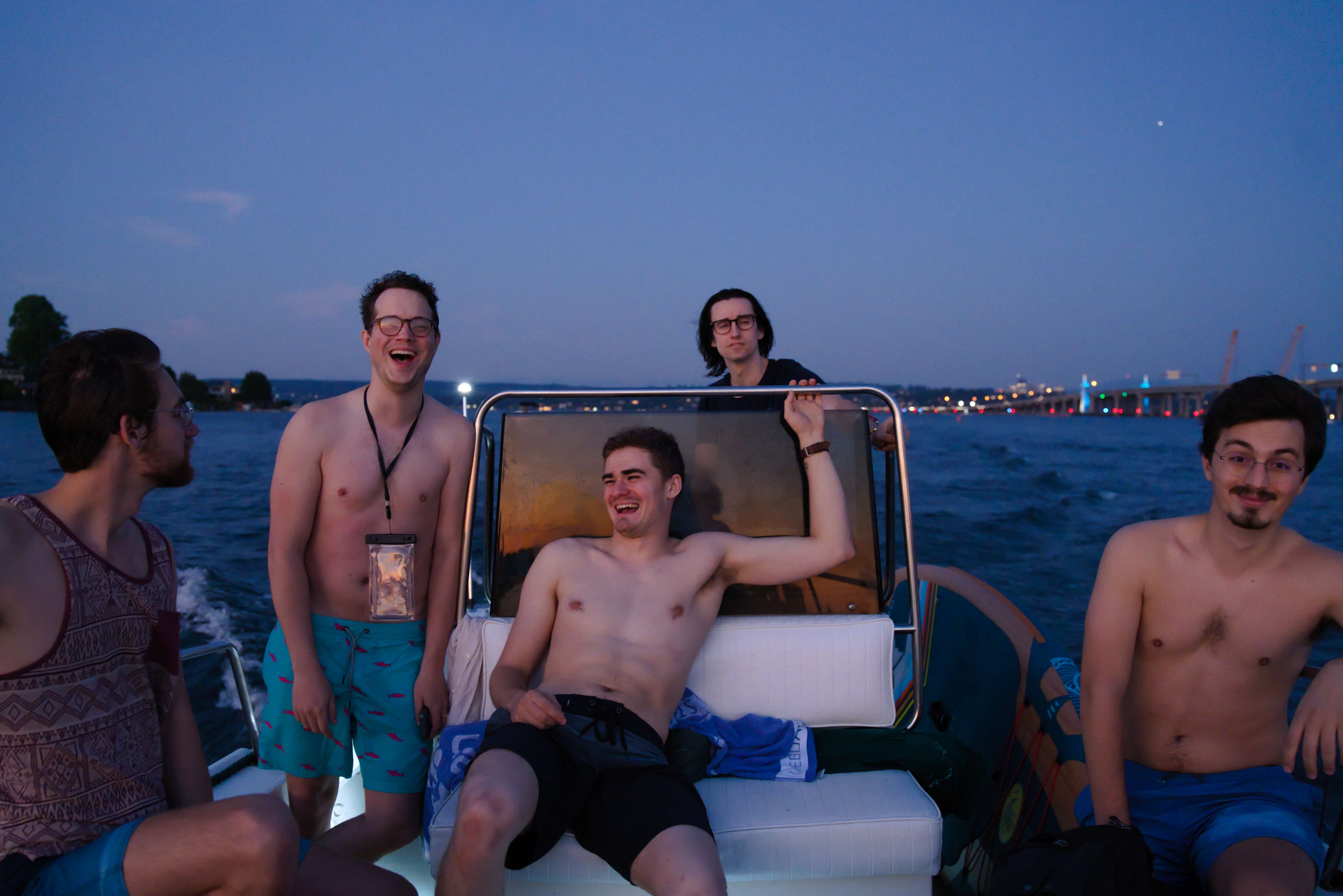 After going out on the boat once or twice I took a large group of my coworkers all the way out to Lake Washington. It was a real work highlight, floating out in the middle of the lake with nothing to do except float and drink.