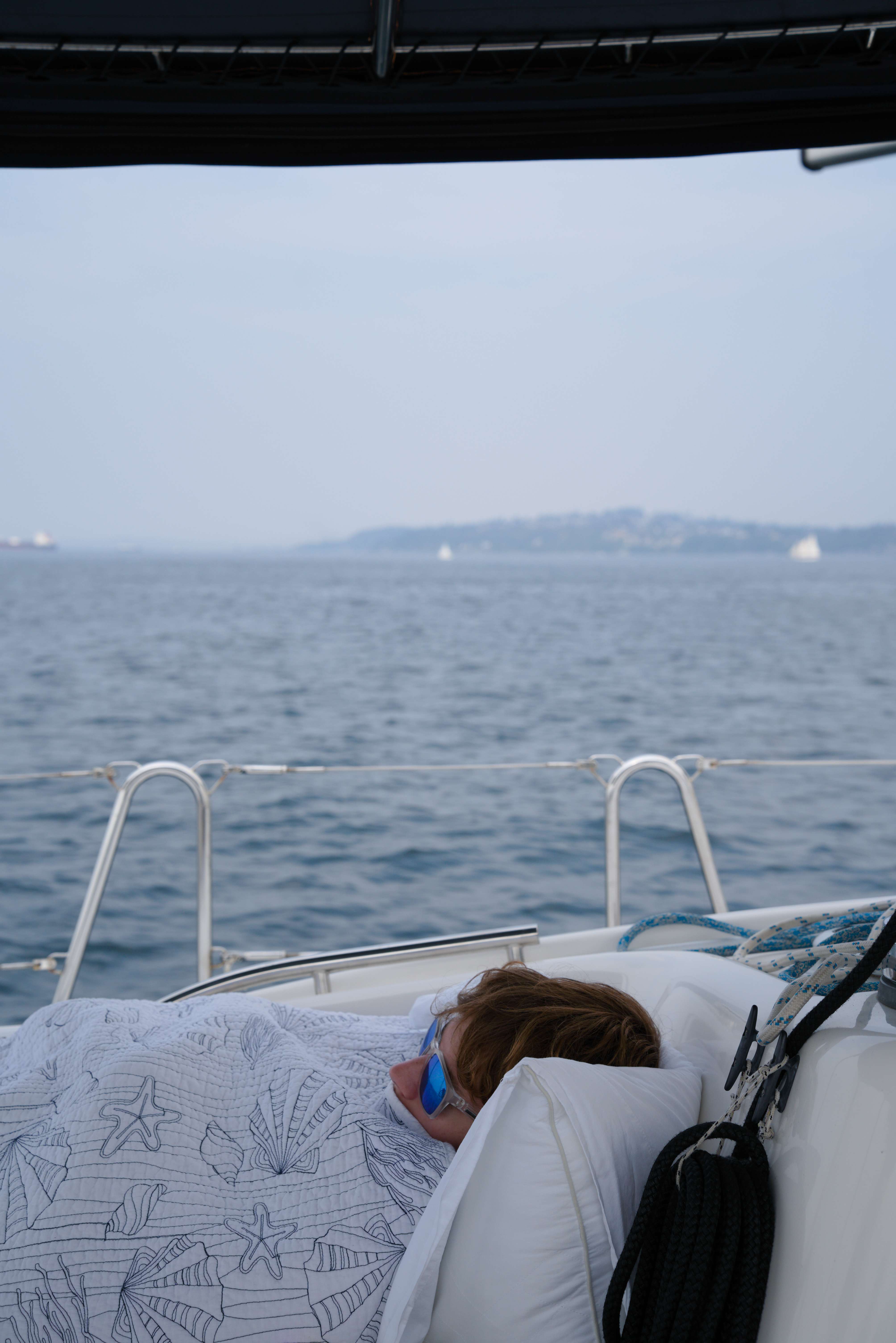 The following morning sail back to Seattle we were all quite tired from a long night of jokes in galley. Cooper slept the entire sail back.